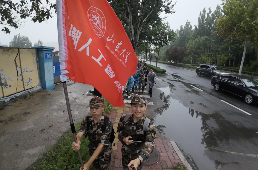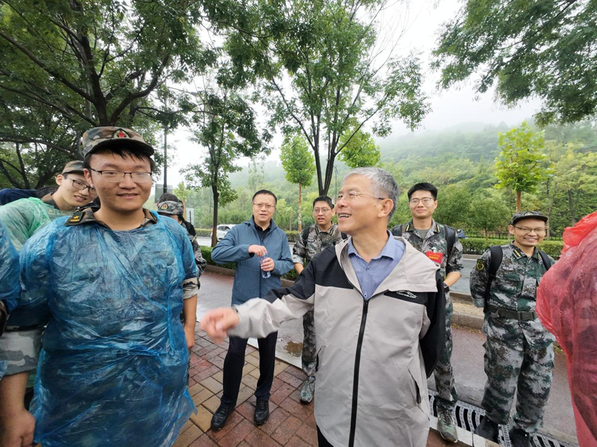 一路陪伴,关怀温暖人心。学校为确保同学们的安全与健康,在拉练途中配备交警、医务和保障人员,设置多个饮水补给点,并为所有同学配发雨衣,williamhill中国也为每位同学准备了保障体力和健康的零食和应急药品,每一处细微关怀都为学生们增添了一份安全感。最令同学们激动的是,李术才校长走进队伍,与大家并肩前行。校长与同学们从校园文化聊到山大历史,从学业规划聊到人生理想。校长表示,军训不仅是身体的锻炼,更是意志的磨砺,鼓励同学们秉承山大校训,心怀浩然之气,在磨砺中成长,为强国建设贡献青春力量。学校领导和学院老师的全程陪伴让同学们如沐春风,吹散秋雨带来的凉意,让每位同学感受到学校和学院的重视与关怀,也对未来大学生活更加充满信心。