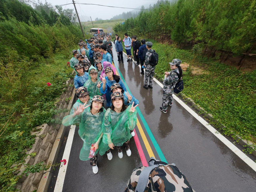 一路向前,毅力坚如磐石。不间断行走15公里,对许多同学而言甚至是人生初体验。拉练开始前,老师和教官们因担心有不少同学会中途放弃,曾向学校多次请示能否增加收拢保障车的配备。然而,拉练正式开始后,同学们顽强的毅力打消了老师和教官的顾虑。一场秋雨猝不及防,虽穿着雨衣,但许多同学头发仍被打湿,可他们脸上毫无抱怨的神情,反而展现出势在必得的坚定。院旗被打湿后重量增加了十几倍,领队学生却毫无怨言,全程牢牢高举院旗,旗帜宛如同学们的精神支柱,引领大家走向终点。校长李术才、党委副书记王君松等学校领导为行进中的同学们加油打气,与大家亲切合影,激励同学们勇于挑战自我,完成这场体力与毅力的双重考验。在领导和老师们的鼓舞下,虽历经四五个小时的路程后,许多同学脚底起泡、行走艰难,但为了集体荣誉,无一人甘愿掉队,全营无人乘坐“收拢车”,全部按时走完全程,受到军训团长的高度赞扬。