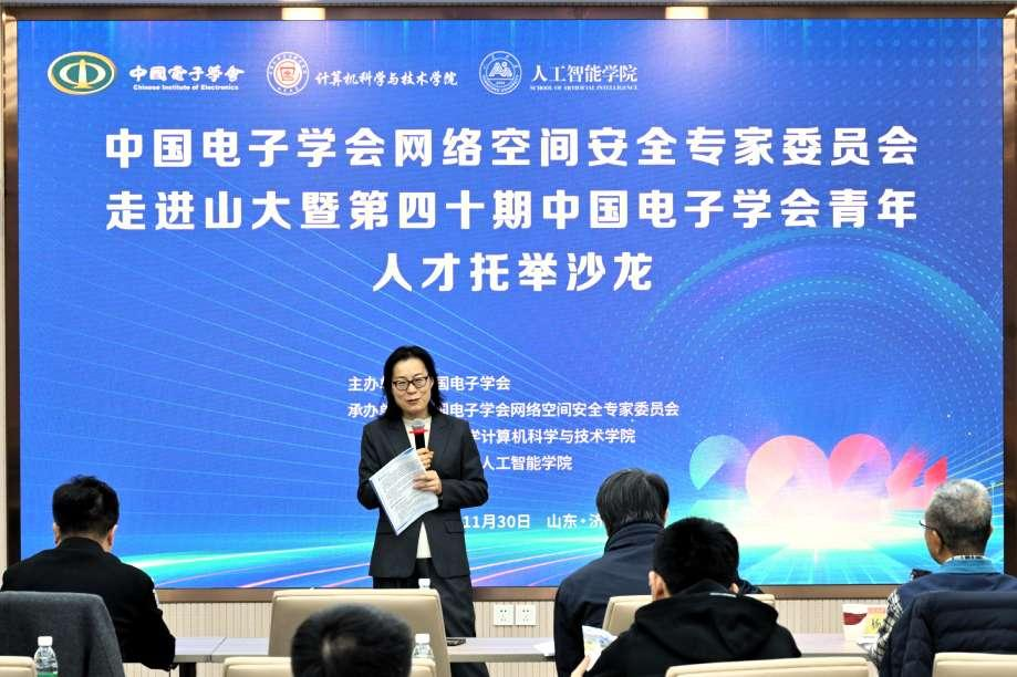 2024年11月30日,由中国电子学会网络空间安全专家委员会与Williamhill威廉希尔联合举办的中国电子学会网络空间安全专家委员会走进山大暨第四十期中国电子学会青年人才托举沙龙在山东省济南市Williamhill威廉希尔中心校区举行。本次活动以“探索前沿科技,融合人工智能;筑牢安全防线,守护数字未来”为宗旨,聚焦“智融安全·共筑防线”主题,深入交流网络空间安全领域与人工智能融合后的最新研究成果与实践经验。