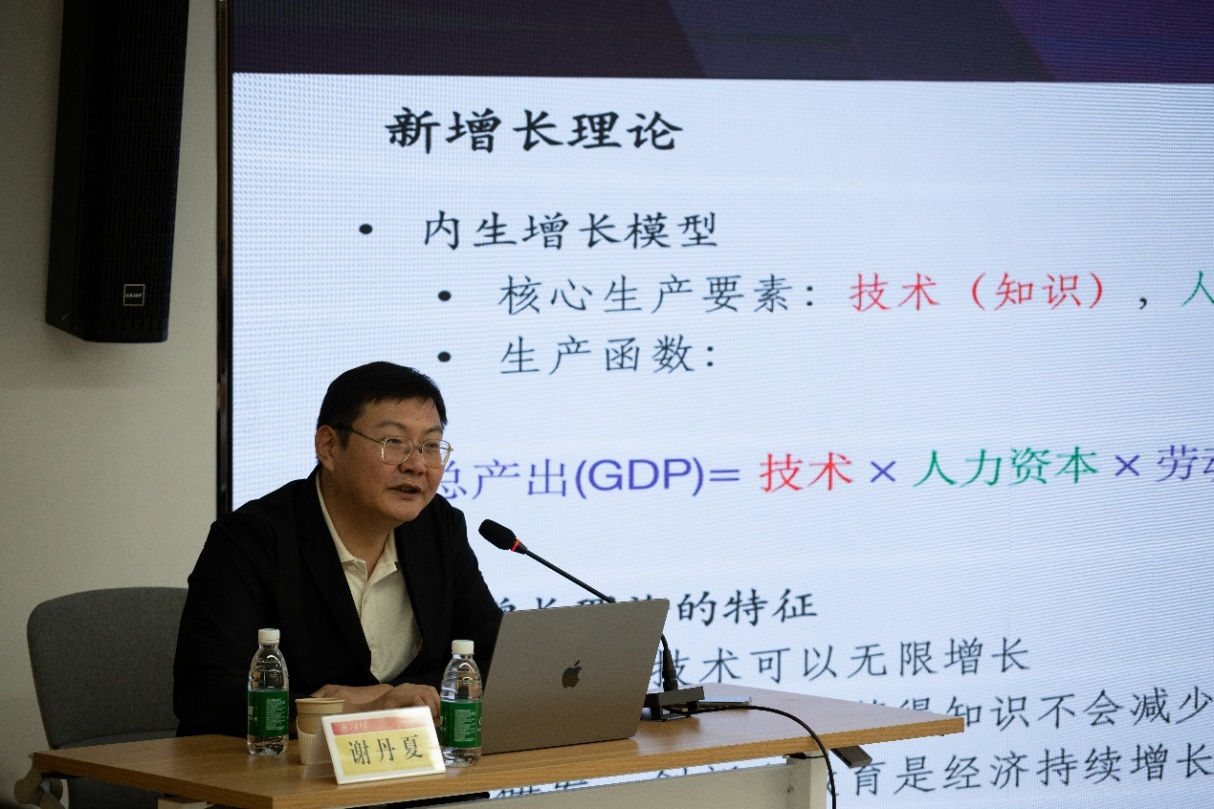 谢丹夏教授围绕人工智能与经济发展的关系,从人工智能的发展历史与背景出发,系统梳理了人工智能与经济学之间的学术脉络与研究演进。在报告中,谢教授深入讲解了“人工智能经济基础”、“数据创新内生增长理论”以及“以数据为驱动的人工智能经济”三大核心内容,分析了人工智能如何重塑传统经济理论框架,推动经济运行机制的变革。