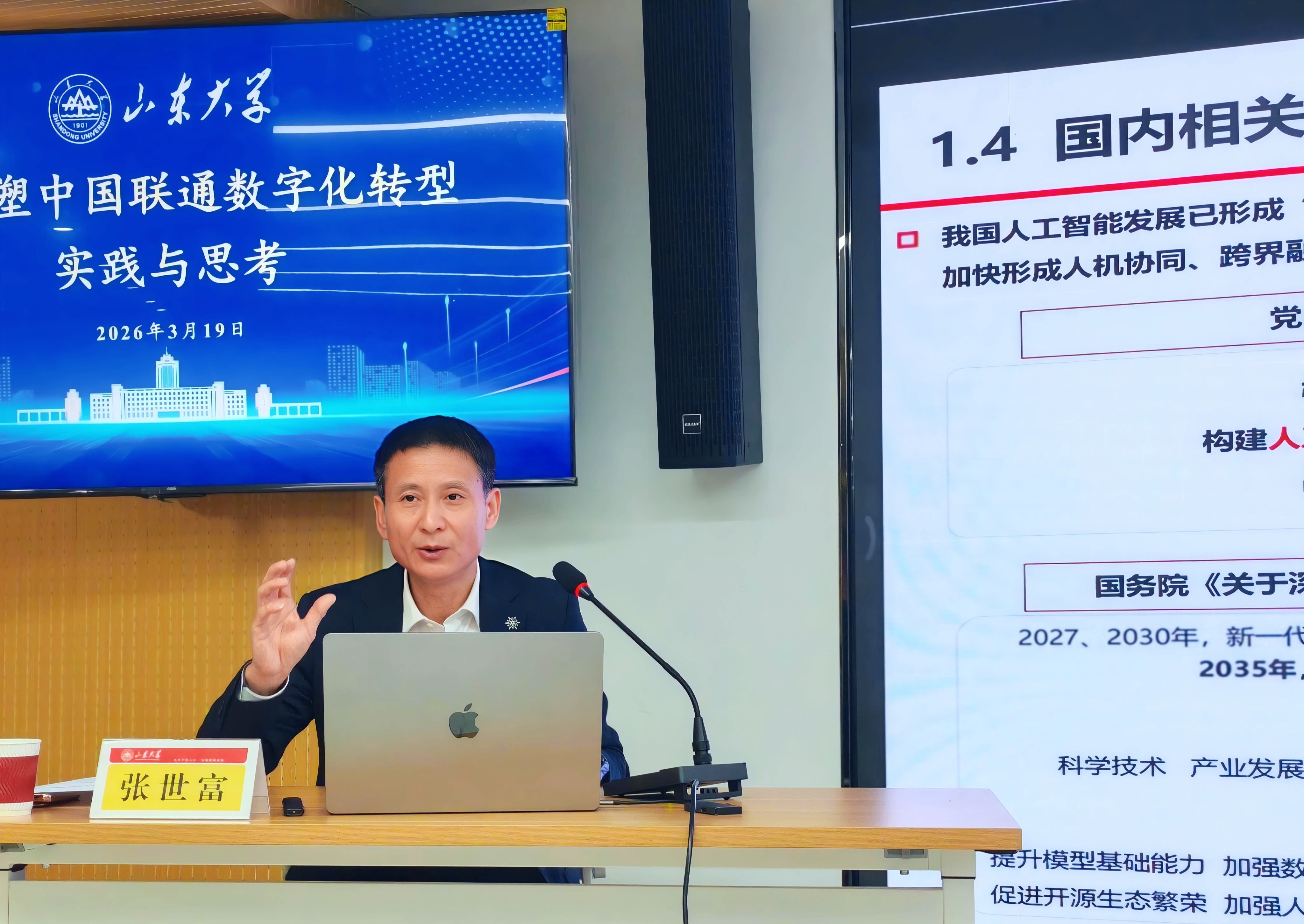 3月19日,williamhill中国举办“人工智能大讲堂”(第五期),中国联通软件研究院济南分院院长张世富作《AI重塑中国联通数字化转型实践与思考》专题报告。williamhill中国副院长魏晓珂主持。活动吸引学院上百名本科生、研究生参加。
